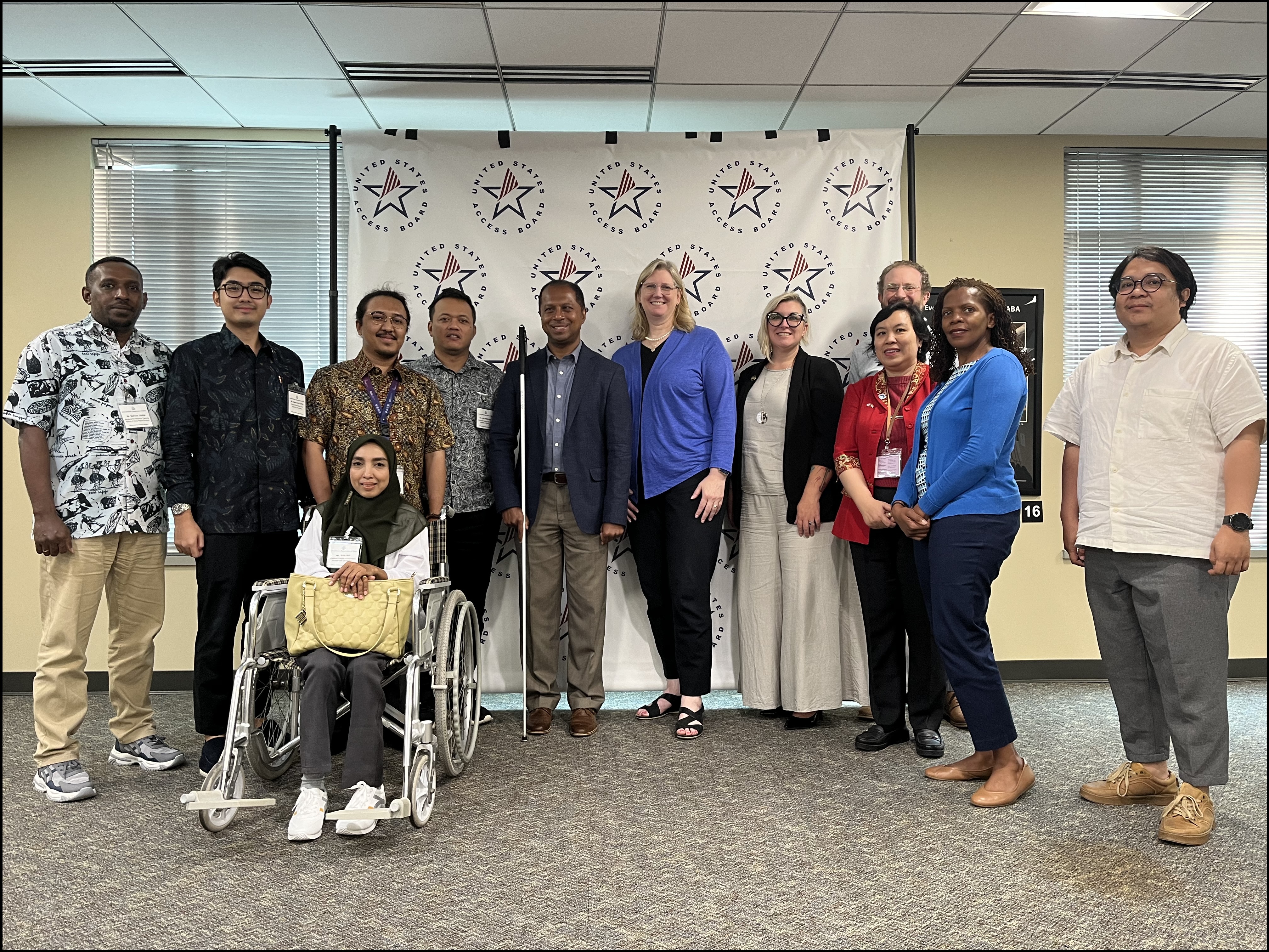 Throughout the past year, the Access Board convened with international representatives from the Department of State’s International Visitor Leadership Program (IVLP), a premier professional exchange program that brings together foreign leaders and American counterparts to engage on emerging issues, policy goals, and shared interests. In November, Board staff met with a delegation from Indonesia, and in December, met with a delegation from the Central African Republic. Both discussions focused on the Board’s rulemaking processes, public engagement, and ways to ensure that people with disabilities have access to government facilities. The delegates welcomed learning more about the ADA and the Architectural Barriers Act as they work toward ensuring access to all aspects of public life for people with disabilities in their respective nations.